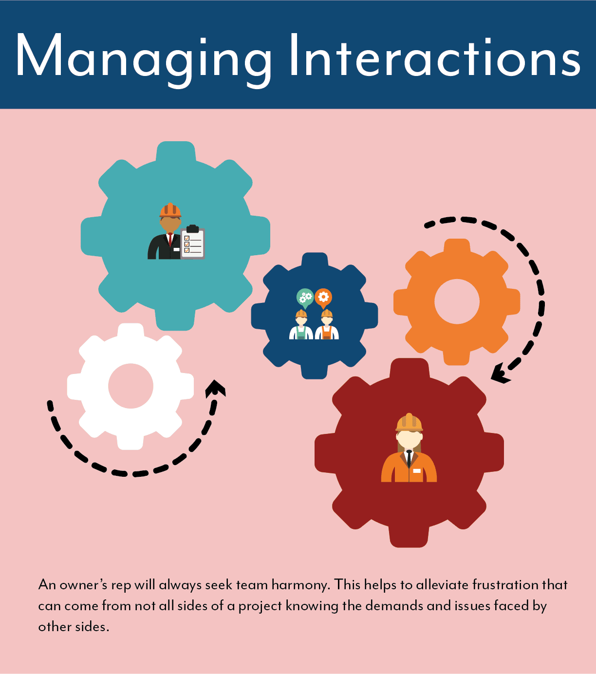 Some of the biggest headaches during a project can come from the back-and-forth between the design side and the construction side. Managing the egos of these sides of the project can be difficult, particularly as the project moves on. An owner’s rep will always seek team harmony. This helps to alleviate frustration that can come from not all sides of a project knowing the demands and issues faced by other sides.