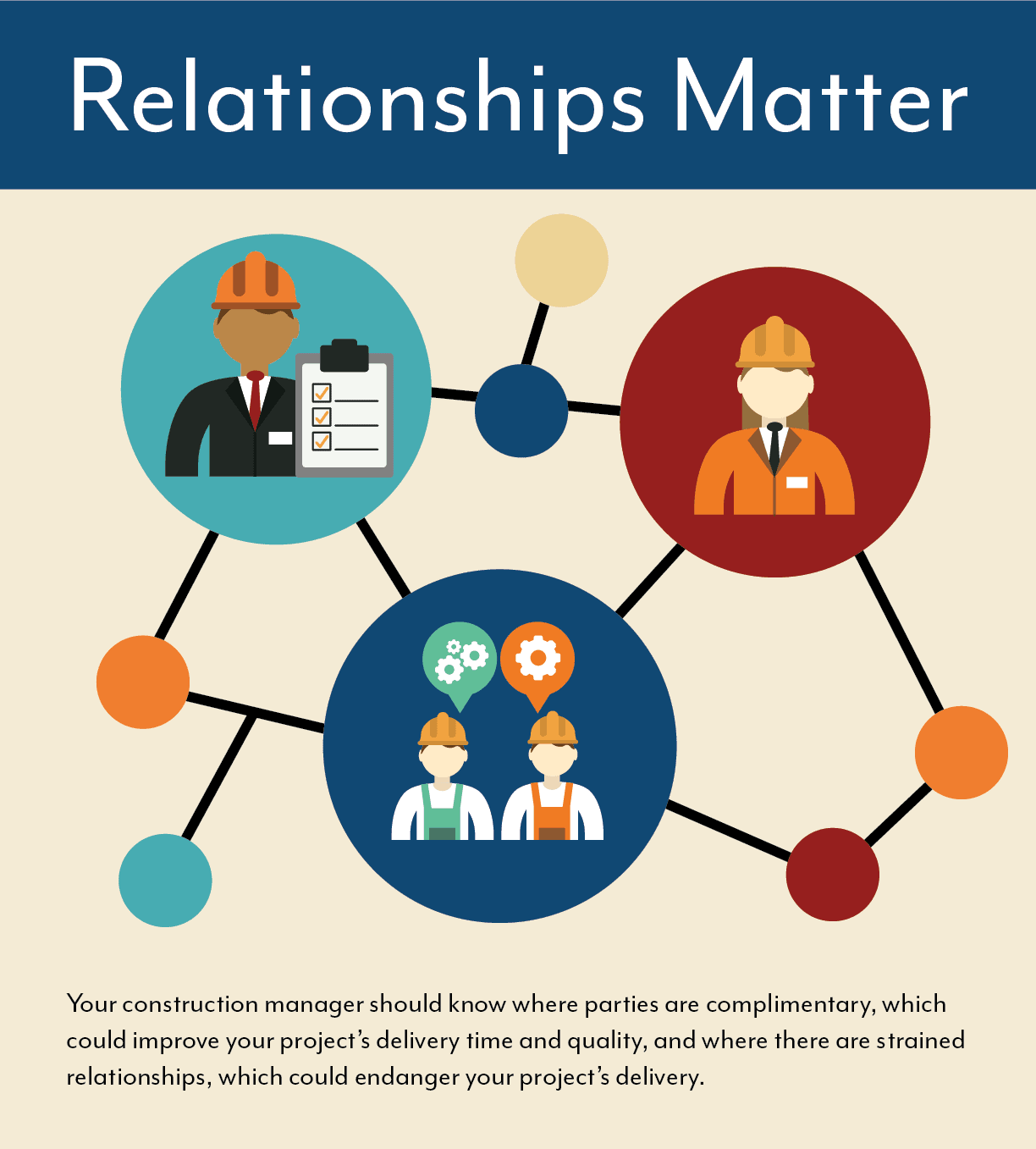 To begin with, a construction manager should have existing relationships with general contractors, architects, and suppliers. They’ve already done some of the weedings out through their years of experience. They know which ones are reputable, or which ones are unreliable.